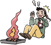 燃えにくい素材の服を選び、「着火剤」の取り扱いには十分気をつけましょう。