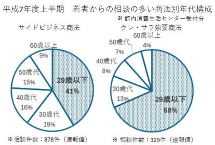 ブル(クレ・サラ強要商法)」のうち約7割が、29歳以下